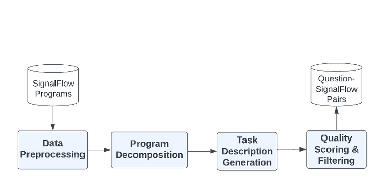 Altogether, this procedure resulted in a curated dataset consisting of tens of thousands of examples, where each example consists of a casual question, a detailed task instruction, and a SignalFlow program.