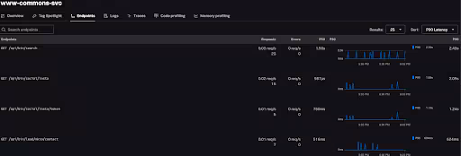 I asked APM AI to analyze Production common-service for the past 8 days. It highlighted The GET /api/bin/careers/joblist endpoint was highly utilized with 87,001 requests and no errors, showcasing its stability.