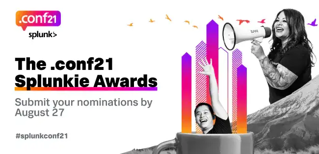 Do you know someone who has been a standout data-doer in their field? Have they harnessed the power of Splunk to advance innovation in their workplace? We invite you to nominate your standout colleagues, customers, partners (you can also nominate yourself!) so that they can be recognized for the remarkable results they have been able to achieve using Splunk. Nominations open today, July 29th, and close on August 27th at midnight.