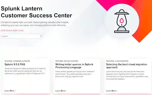 Splunk Lantern is where these experts come together to share their knowledge with you. We've developed a base of more than 800 articles to help you get started, activate new use cases, uncover product tips, and more. These articles come directly from the minds and experience of our Customer Success Managers, Professional Services Architects, and Product Managers who love to share their hard-won knowledge.