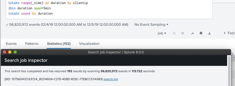 |stats count by duration