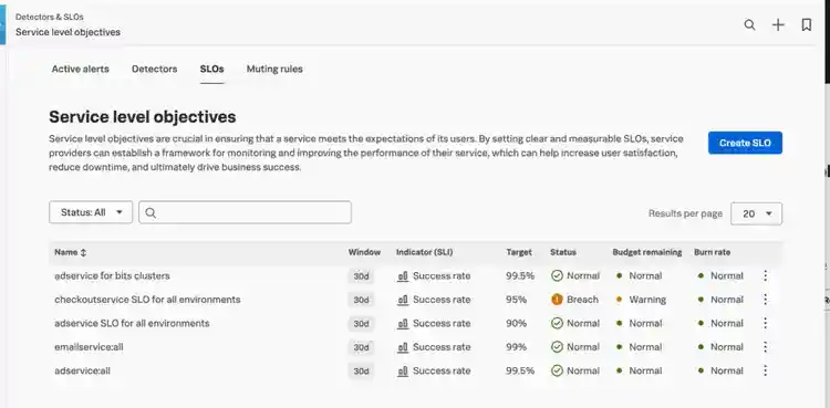 At Splunk, we know how important it is to monitor your Service Level Objectives (SLO) and make sure that your new applications and your end-user experience work seamlessly. That’s why we’ve built out a new SLO management experience that allows you to create and visualize your SLOs in a more intuitive interface. With this new built-in experience, we’re making it easier than ever for Splunk Observability Cloud users to track the reliability and performance of the services that impact their critical user journeys and business goals.