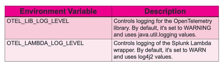 You’ll need to set environment variables for the Lambda function. These environment variables control logging: