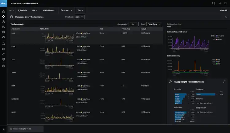 From here, the SRE can effectively communicate the performance problems with the ‘Cart service’ and ‘cartservice:grpc.request’ workflow, and their SCAN commands to their database administrators or service owners.