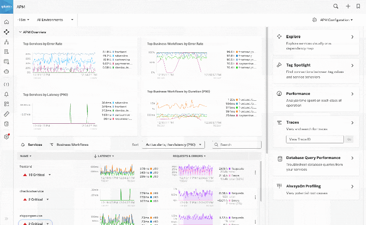 Splunk Observability Cloud does that by bringing together infrastructure monitoring, APM, and digital experience monitoring in one unified solution. This platform approach to observability enables users to reduce downtime by gaining full visibility across their systems in one place. Not to mention that consolidating tools will reduce operational maintenance as well as drive better cross-team alignment, more cost control, and efficiency.
