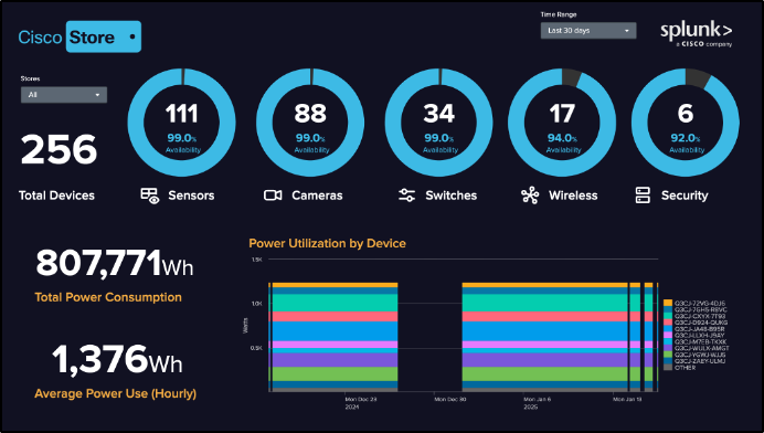 End-to-end visibility for device health, asset management and power consumption for real-time insights across stores