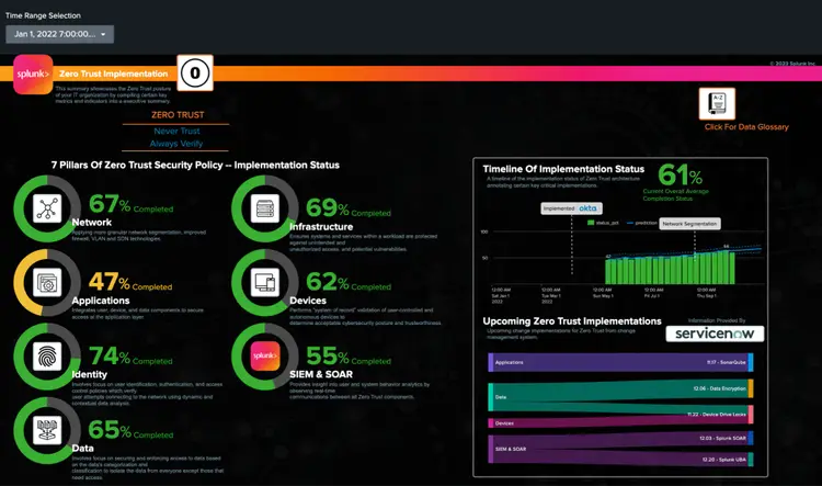 Splunk's ability to analyze any data type, in any format, across any time scale, and present that data in easy-to-interpret executive dashboards makes it the best platform to provide a real-time posture view for an organization’s executives. Splunk’s ability to highlight trends, patterns and anomalies in this data allows Splunk dashboards to provide vivid insights for leaders and their teams. With Splunk you can accelerate day-to-day operations to improve MTTD and MTTR, absorb shocks to better withstand and recover from system disruptions and drive transformation with visibility across all architectures to deliver on your mission