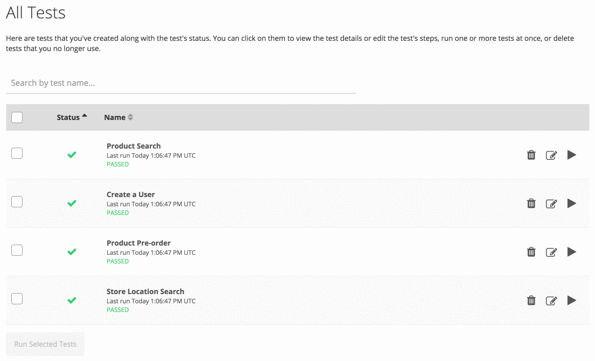 You don’t want to have to wait for the next monitoring test run to know if there is an error. With testing, you can simply push a button, run the test, and determine if you are good to go. Similarly, in dev or QA environments, you want to know if a test passes or fails, and the context about the nature of a failure.