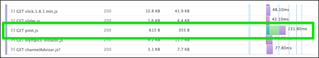 When the browser later determines that it needs to request pinit.js and makes a connection to stats.example.com, the DNS lookup has already occurred. This allows the JS file to download more quickly, shifting the overall waterfall to the left.
