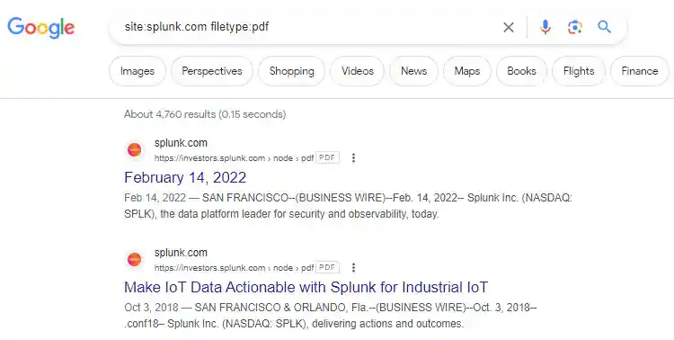 - Filetype: Searches for specific file types. (in this example, combined with “site:”)
