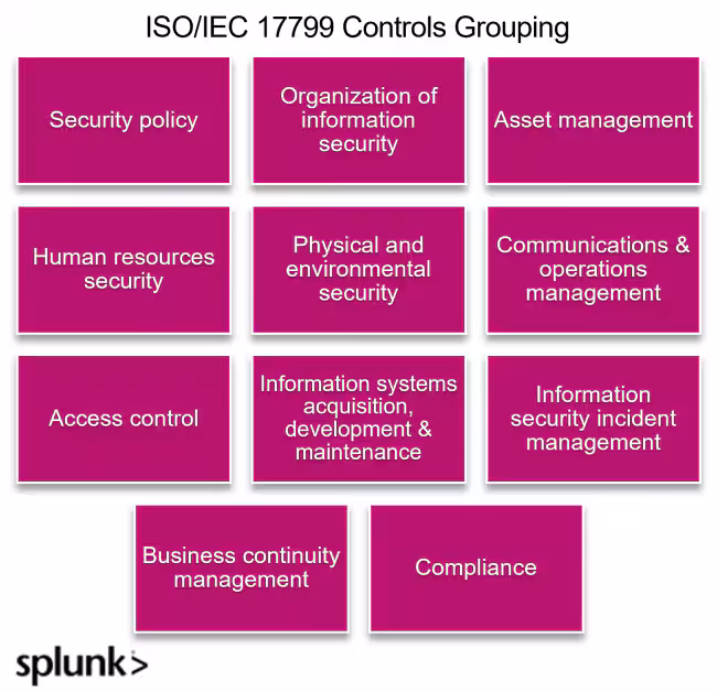 - Organizations can map ISO/IEC 27002 controls to frameworks such as NIST SP 800-53 and use platforms like Splunk to automate monitoring, reporting, and continuous improvement of their security posture.