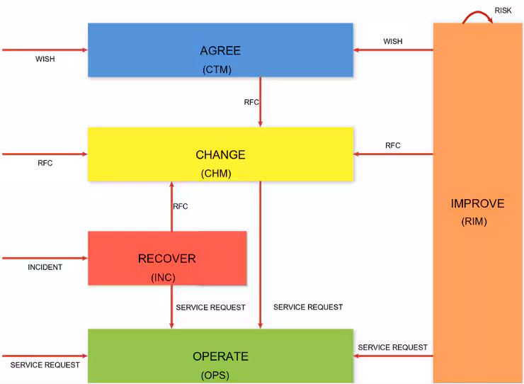 The high-level approach to implementing ITSM frameworks usually involves 3 main phases: