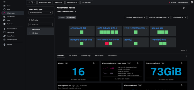 For example, Splunk Observability Cloud provides comprehensive monitoring for Kubernetes environments. It enables deep visibility into cluster health, workload performance, and resource utilization, facilitating proactive issue resolution and performance tuning.