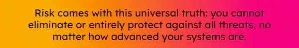 Part of the problem with risk is this universal truth: you cannot eliminate or entirely protect against all threats, no matter how advanced your systems are. This is where the practice of risk management comes in: a routine, ongoing practice where the right personnel are regularly reviewing risks in order to minimize the potential for certain threats to occur.
