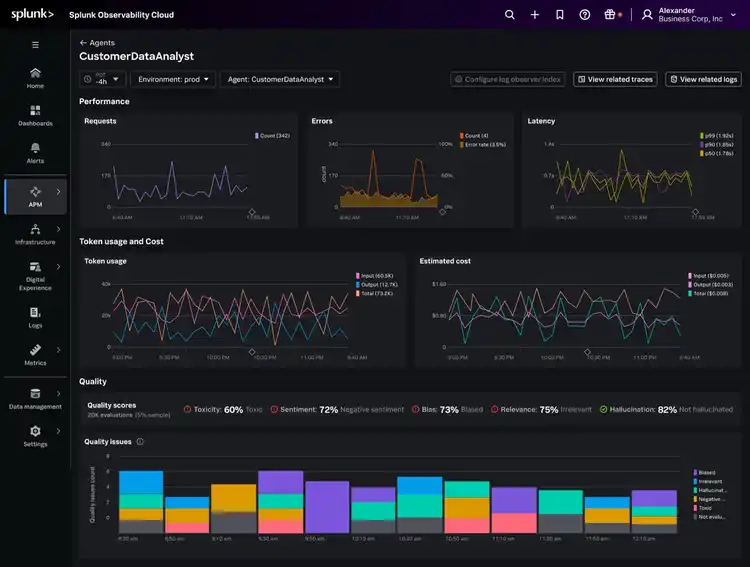 Health and performance monitoring is also streamlined, allowing teams to quickly detect anomalies and address issues before they affect end users or business-critical applications. Customizable dashboards and business journey mapping further enhance visibility into how AI agents impact application performance and business transactions.