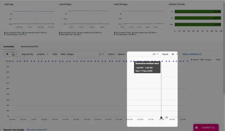 under_maintenance=true. These runs are excluded from uptime, SLAs, SLOs, and averages.Pro Tip: Use under maintenance data for insight