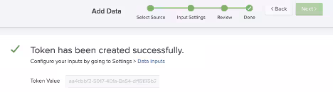 Select Submit to generate the token. Be sure to copy this value as it is used later in the configuration.