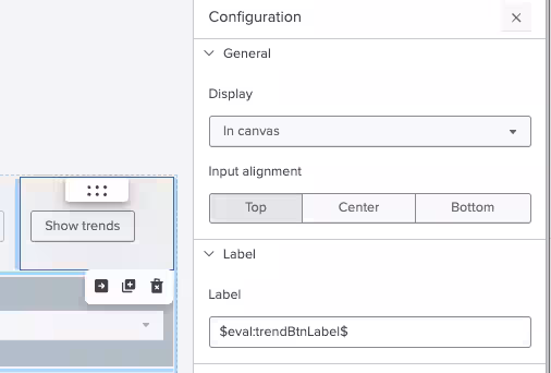 The button label is then referenced using the syntax $eval:trendBtnLabel$
