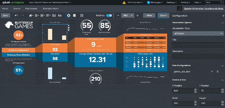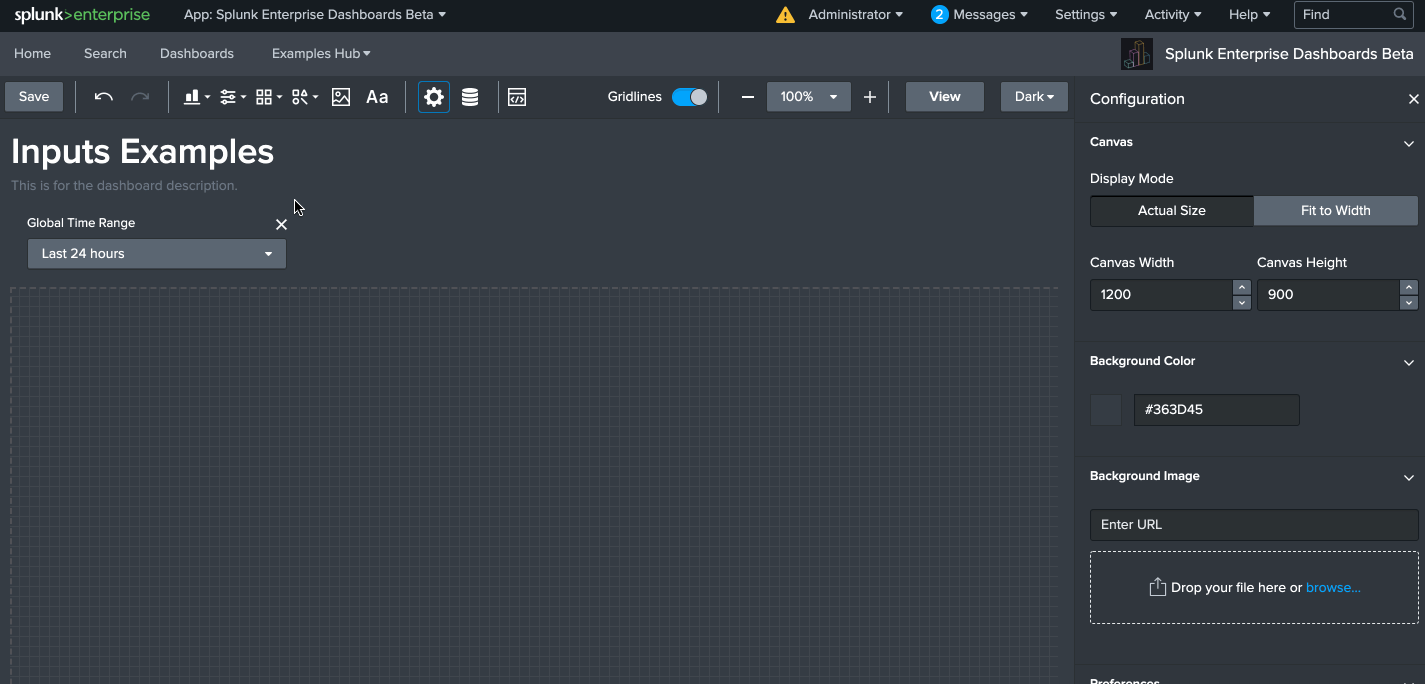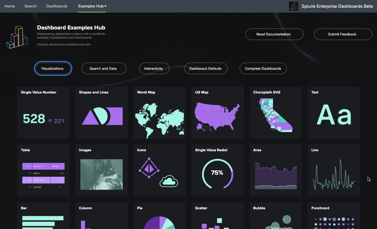 Whether you’ve been using the Splunk Dashboards app (beta) for months or are just getting started, you may have found yourself thinking “gee, I wish there were some examples I could look at, to use as a starting point.” Well, look no further! The Splunk Dashboards app (beta) v0.8 comes equipped with a multitude of examples for visualizations, data source types, inputs, dashboard defaults, and complete dashboards.