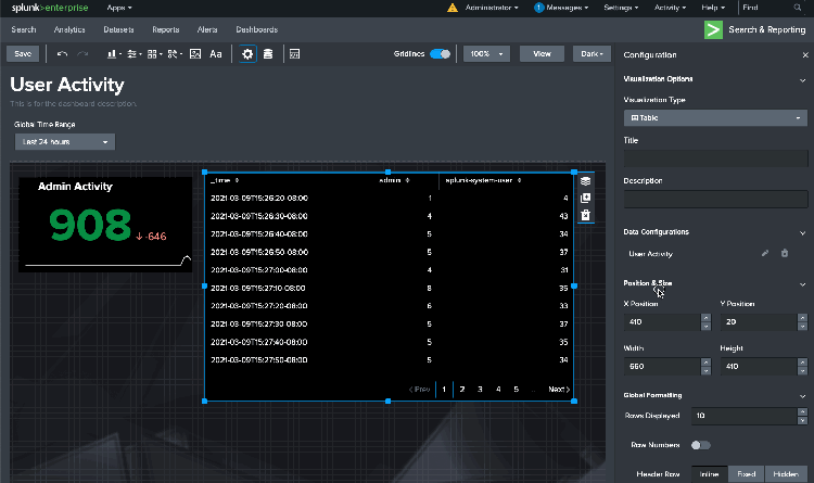 Dashboard Studio has advanced visualization tools and flexible layout options to easily create visually-compelling, pixel perfect dashboards. It offers out-of-the-box support for dashboard customization and an intuitive editing interface that enables new and experienced users to easily create the visualizations. This dashboard builder has a wide range of capabilities so in this blog we will focus on the new features since the last release of the Dashboard Beta app. For details on all the capabilities, you can check out the documentation and keep an eye out for more blogs!