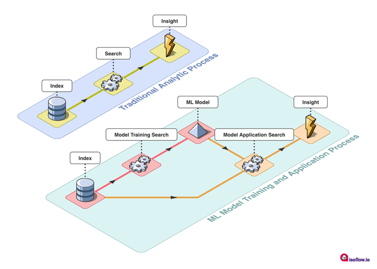 Typically at Splunk, when you’re trying to analyze a dataset or find a needle in a haystack, a single SPL search is enough to get the information you need. With ML-based analytics though, you have to train an ML model first, which will subsequently be used to derive the insights you need.