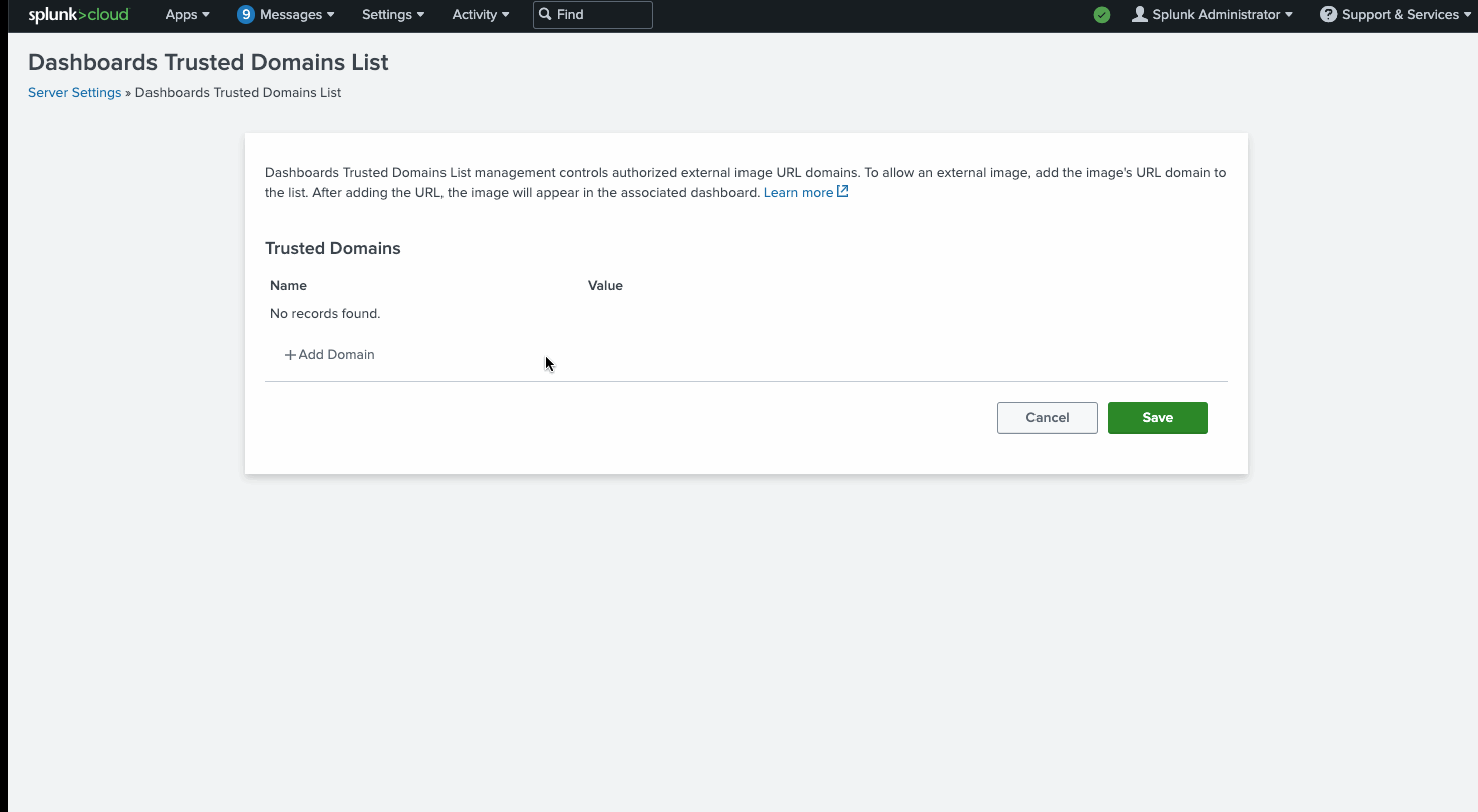 If there are links that you trust, you can work with your Splunk admin to add those domains or links to the Dashboards Trusted Domains list. We recommend using as specific of a link as possible. For example, www.splunk.com/products instead of www.splunk.com.