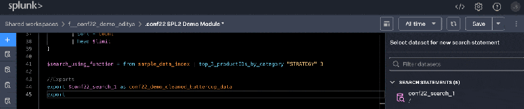 The new editor supports our updated Search Processor Language (SPL2), a more concise and powerful version of our search language. SPL2 is designed for users with a range of query language backgrounds including SPL and SQL while maintaining a similar syntax for familiarity. It also introduces a range of powerful capabilities such as built-in functions, types and the ability to add comments.