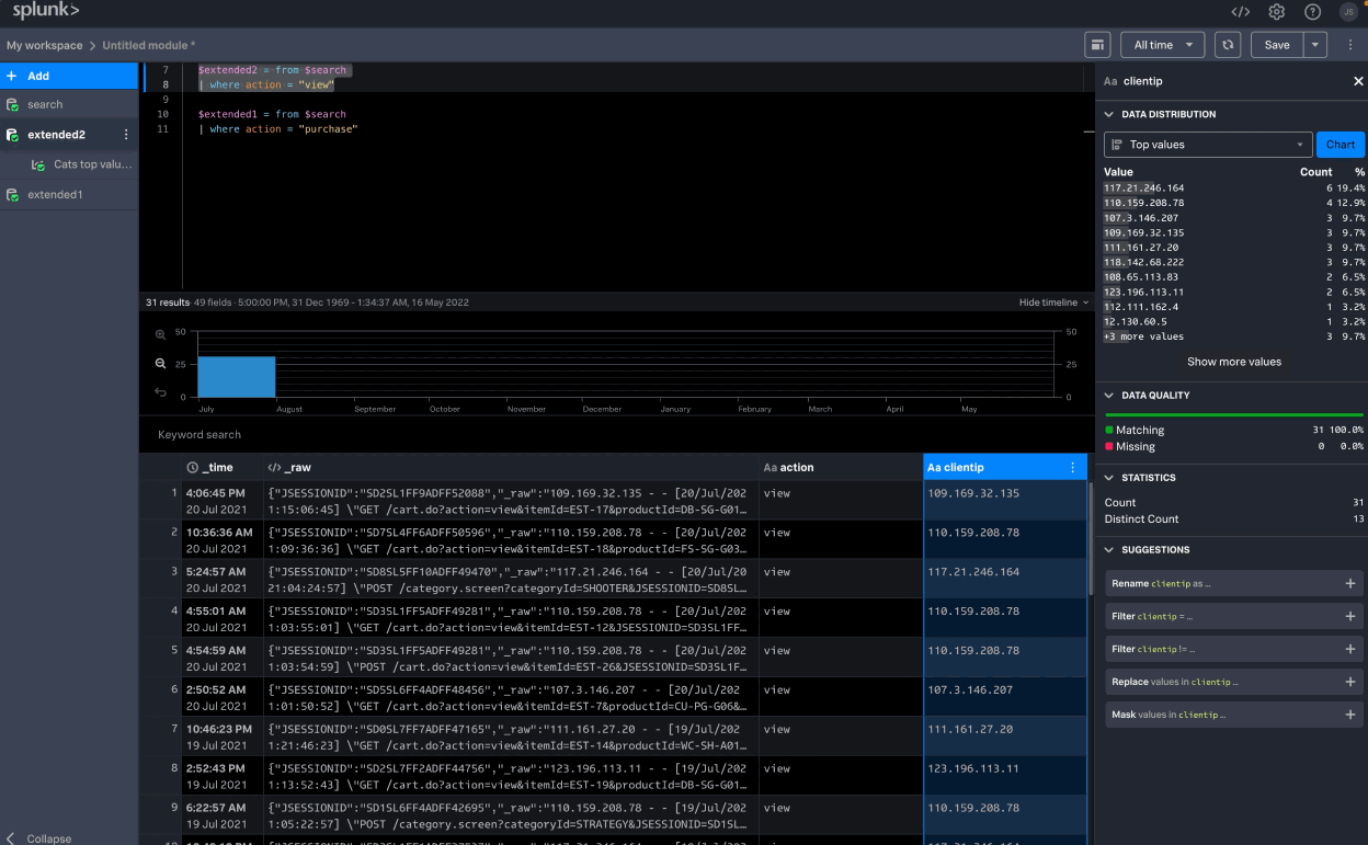 If you’ve never written SPL searches before – or occasionally forget which command to use or the correct syntax – auto-completion and in-line documentation make it fast and easy to start writing searches.
