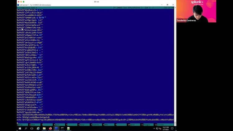Figure 5.2 shows a screenshot of the commented portion of the .bat script, which is the encoded and encrypted payload. The PowerShell script generated and executed by the .bat script mentioned earlier performs the following steps to extract and execute the actual malware payload.