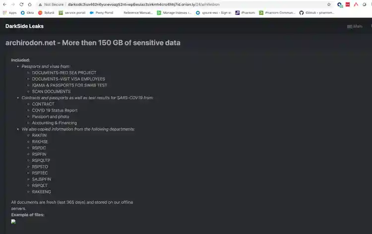 One of the TOR URI addresses presented in the note appears to be targeted to the victim, we found that the site to input key was similar in different samples. The DarkSide group had a website on the dark web accessible via TOR or TOR Proxy. Several company logos were found on this site and in what appears to be sensitive information made public from their campaigns.