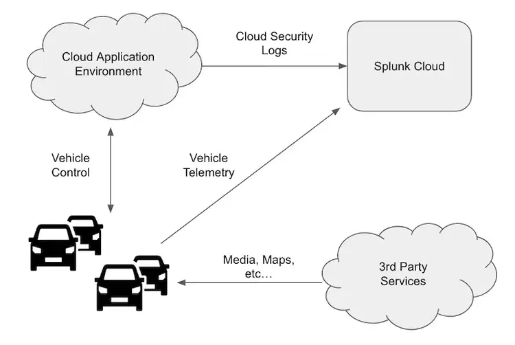 Finally, there is a large ecosystem of third-party services that provide anything from navigation to streaming media directly to the vehicle. Considering there are several examples of gaining remote access to vehicles through these services, Splunk will monitor for signals of compromise via vehicle telemetry.