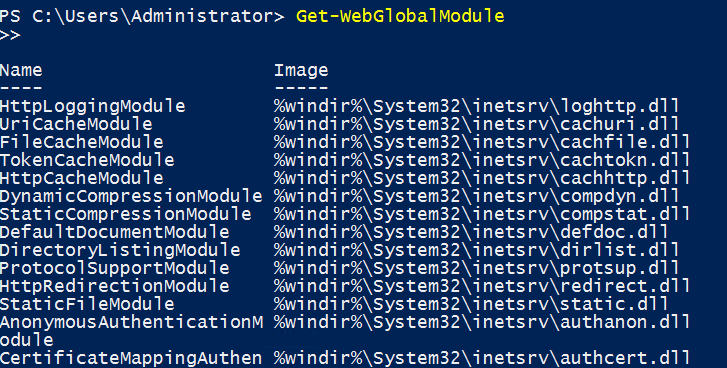 Windows IIS Components Get-WebGlobalModule Module Query