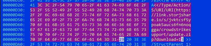 The phishing campaign utilizes a .PDF attachment to deceive users. As depicted in Figure 4, threat actors craft the PDF to entice users by presenting it as a solution to the recent downtime issue. The document contains a link, which, when clicked, purportedly downloads a fix tool to resolve the BSOD problem, but actually, this link directs users to malicious software that wipes the compromised systems. This tactic underscores the social engineering strategies used by threat actors to exploit issues during crisis events.