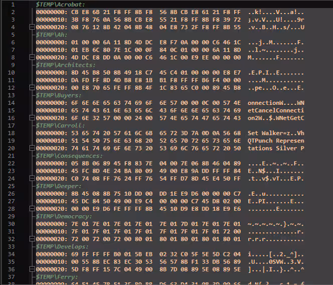 Upon investigating the concatenated files, the Splunk Threat Research Team discovered that they consist of executable code segments assembled like a puzzle. This is similar to the .a3x file that contains a malicious compiled AutoIt script responsible for loading the final payload, which is the wiper. This multi-component approach serves as an effective defense evasion strategy against Endpoint Detection and Response (EDR) and antivirus (AV) products. By distributing the payload across several files and utilizing obfuscation, the malware can bypass detection mechanisms that monitor NSIS components for potentially harmful executables or embedded modules.
