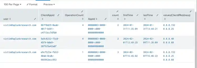 as src_ip by user ClientAppId OperationCount AppId ClientInfoString