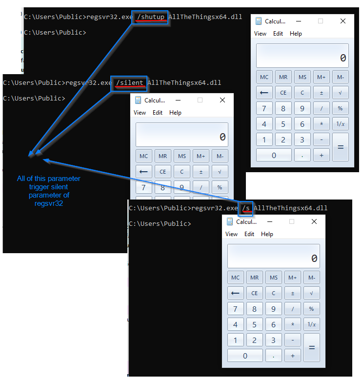 One example of such a technique is an idiosyncrasy in how regsvr32.exe processes its arguments to execute specific features. This issue lies in regsvr32.exe only checking the first letter of the parameter after the "/" or "-", which can lead to command line obfuscation. As a result, this poor argument checking may allow attackers to evade common command line detection methods typically used to monitor regsvr32.exe processes. The quick analysis on this obfuscation was shared on X.