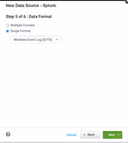 Figure1: Support for multiple formats in Windows log onboardingDuring file selection, as shown in figure 1, choose the Windows Event Log (EVTX) format to properly load Powershell events in the XML Windows Event format.