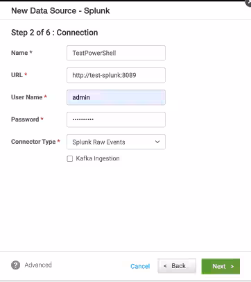 Step 1: Create a new data source in UBA, setting the source connector as Splunk.