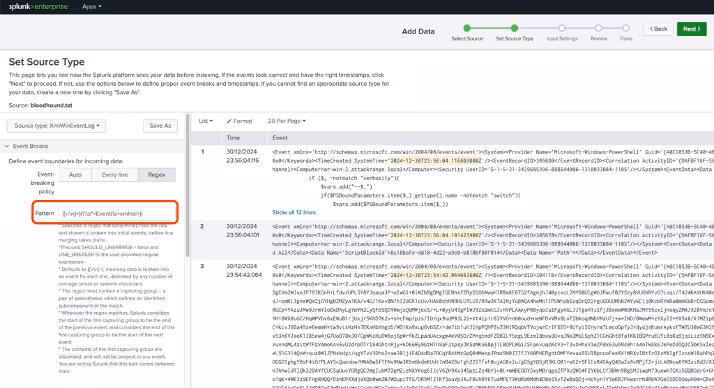 Set a Regex pattern to identify event boundaries accurately, as shown in Figure 4.