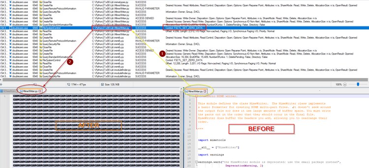 Below is an example of the event that happened to the compromised test lab while it wipes the file. We can see how the “MimeWriter.py” file was wiped with zero bytes after calling the IOCTL code FSCTL_SET_ZERO_DATA.