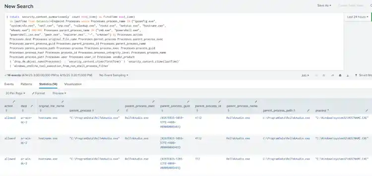 as lastTime from datamodel=Endpoint.Processes where Processes.process_name!=powershell.exe AND Processes.process_name!=pwsh.exe