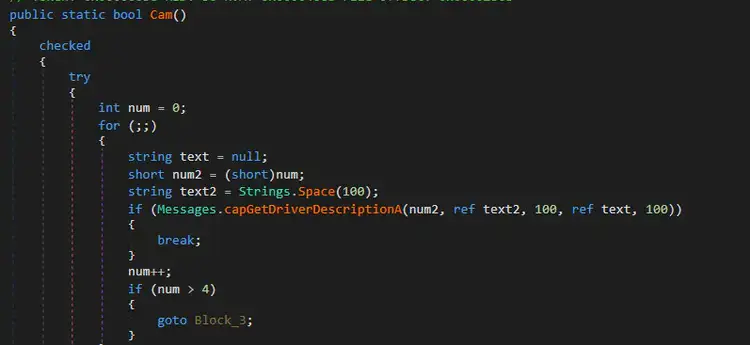 Figure 16 shows the code snippet of XWorm that retrieves a description of a video capture driver based on its index (0-based) using capGetDriverDescriptionA() API. This function identifies available webcam or capture devices on the compromised host.