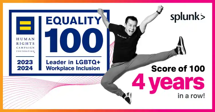 2023 is Splunk’s fourth consecutive year receiving a perfect score of 100, reflecting our ongoing commitment to LGBTQ+ inclusion and equality in our workplace and communities. From our LGBTQ+ inclusive workplace benefits to proudly advocating in support of equality in our local communities, we remain firmly committed to a safe and inclusive workplace for all of our employees.