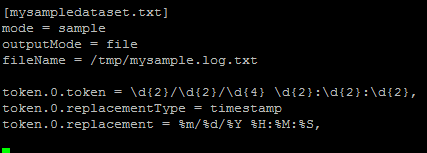 mode = sample outputMode = file fileName = /tmp/mysample.log