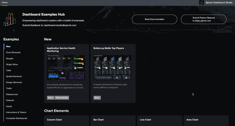 - Examples Hub - Find the Examples Hub from the Dashboards page in Search & Reporting
