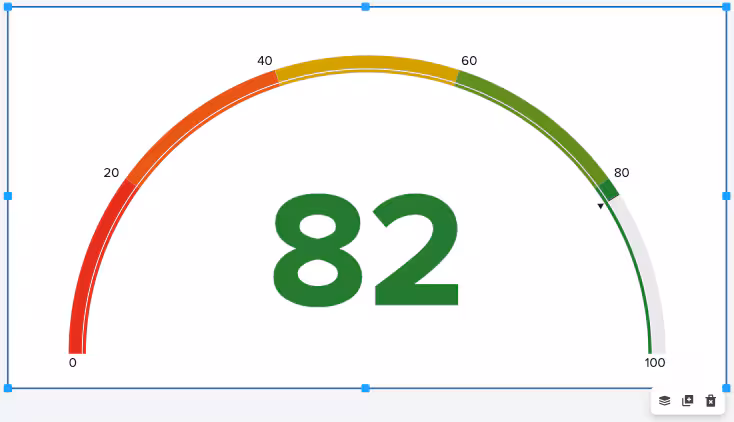 Your Single Value Radial Gauge will look something like this, complete with a marker for where your single value currently sits (82, in this example).