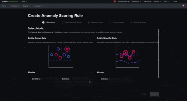 Nowhere is this more apparent than the new workflow pages for building behavioral indicator searches and anomaly scoring rules where react-based menus leveraging Splunk UI replace their SimpleXML-based predecessors.