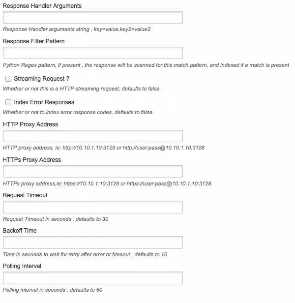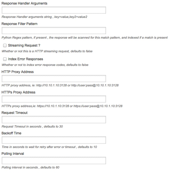 Configuring your new REST input is simply a matter of filling in the fields