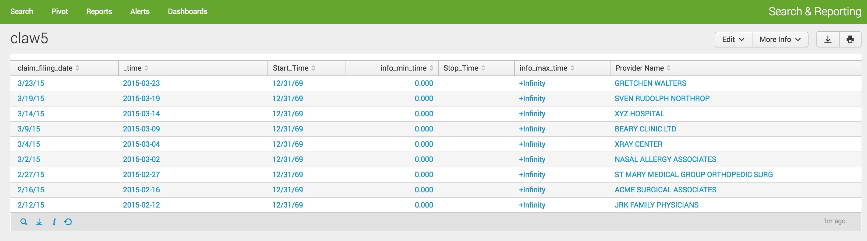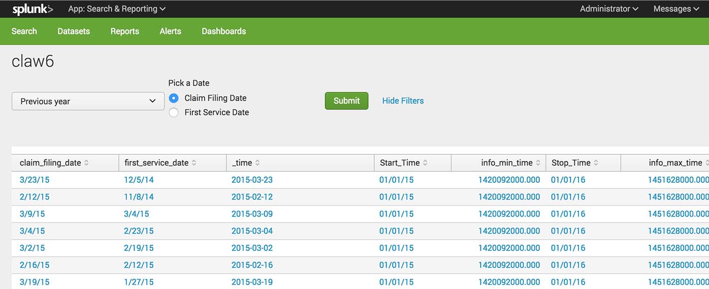 | table claim_filing_date _time Start_Time info_min_time